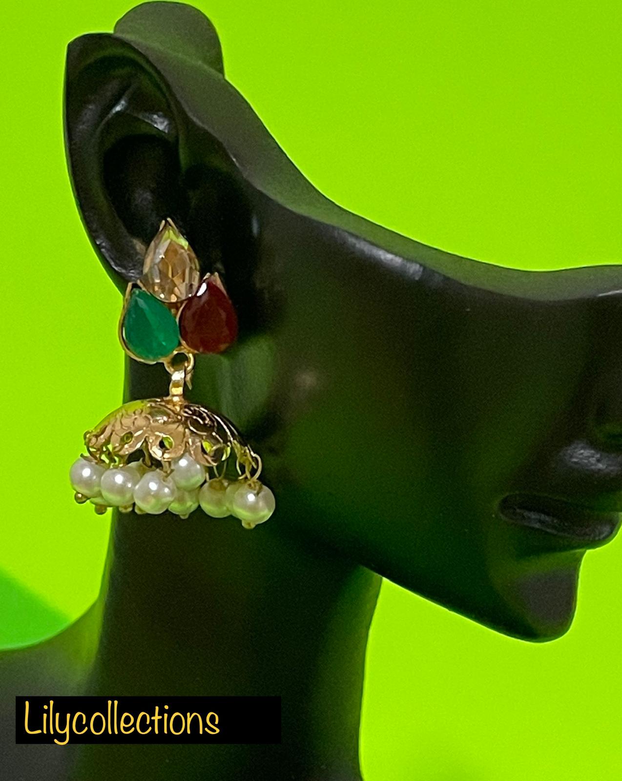 Add a touch of global elegance to your style with the LilyNYC Pearl Drop Fusion Earrings — where traditional charm meets modern flair. Featuring a trio of jewel-toned teardrop crystals in rich emerald, ruby, and champagne, these earrings cascade into a beautifully detailed gold-tone dome accented with luminous pearl drops.